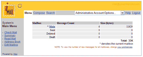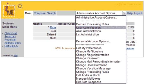 Click on Menu to get back Mail Administration Page