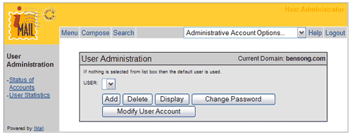 Administration This function allows you to create, modify, and delete users and aliases, as well as administer the settings for users and aliases.