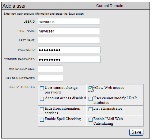 Userid : newuser First Name: newuser Password : newuser88 (example only!! password can be anything) Confirm Password: newuser88